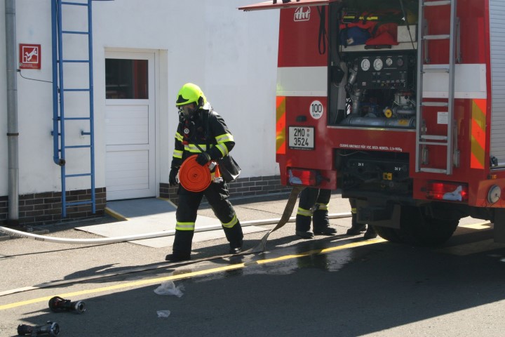 Hasiči cvičně likvidovali požár ve skladu hygienických potřeb v Litovli
