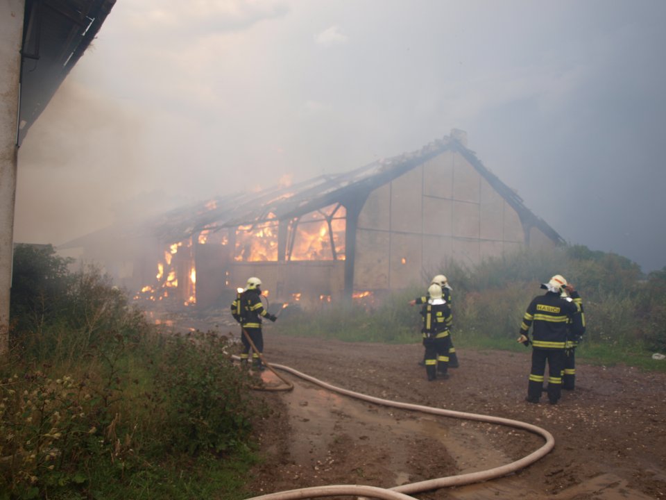 Úmyslně založený požár skladovacích hal a pole nedaleko Jičína