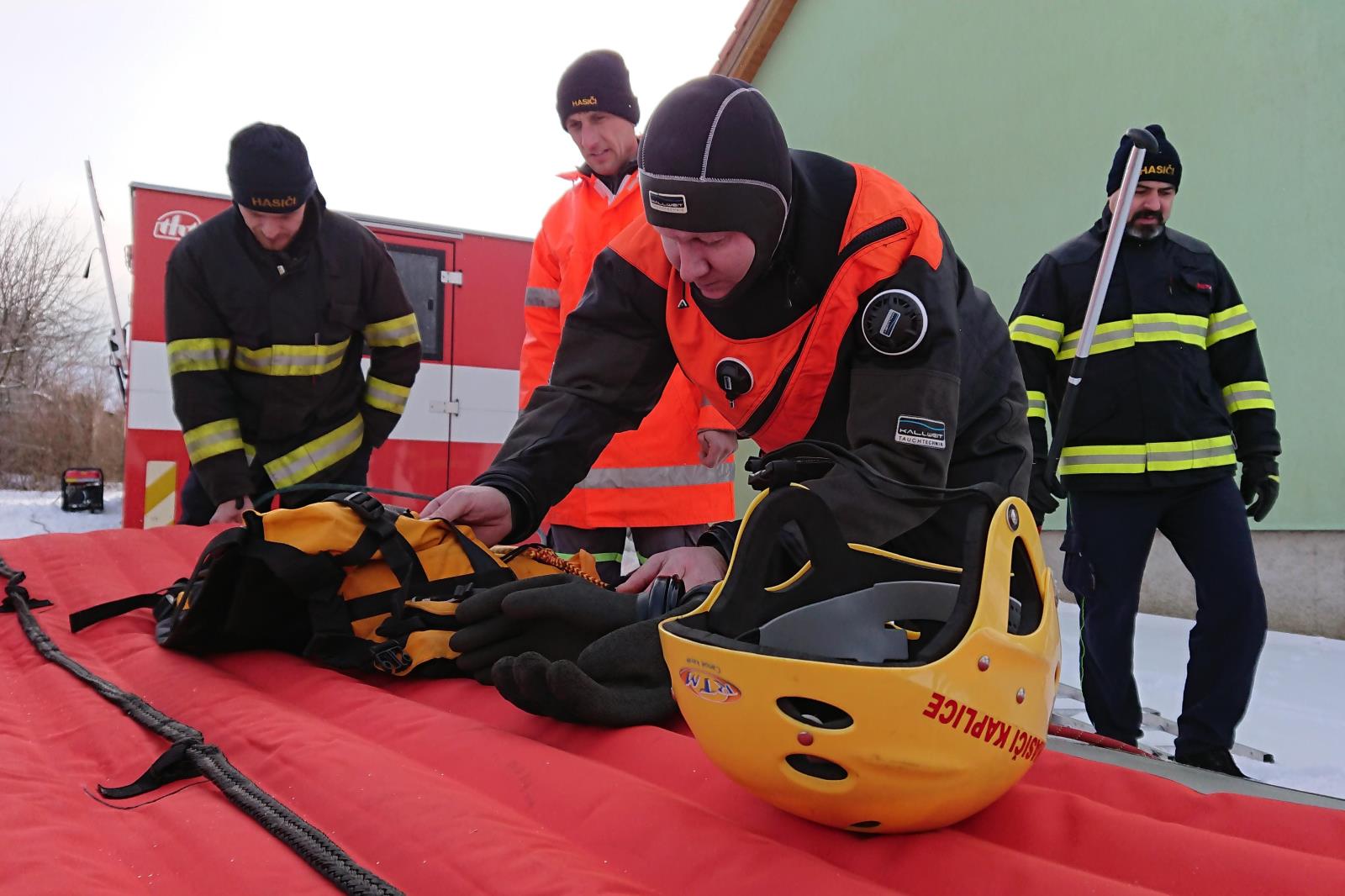 Na Lipenské přehradě hasiči cvičí záchranu probořených z ledu