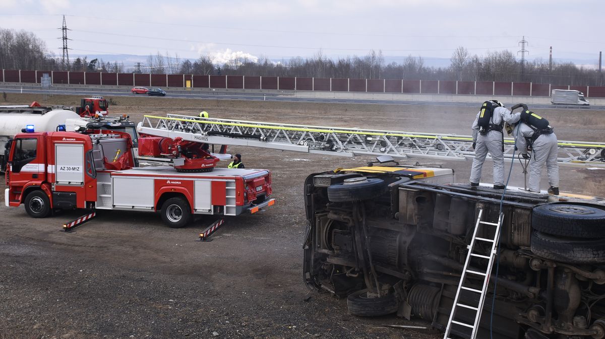 U Lokte se převrátila cisterna s naftou, hasiči museli Cobrou vyříznout otvor pro přečerpání