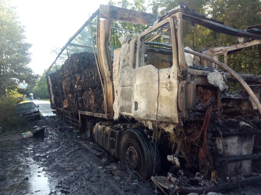 Požár kamionu s odpadním papírem