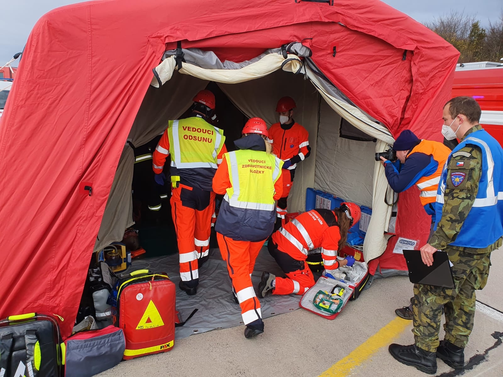 Na letišti v Pardubicích spadl vrtulník s devíti pasažéry, naštěstí cvičně