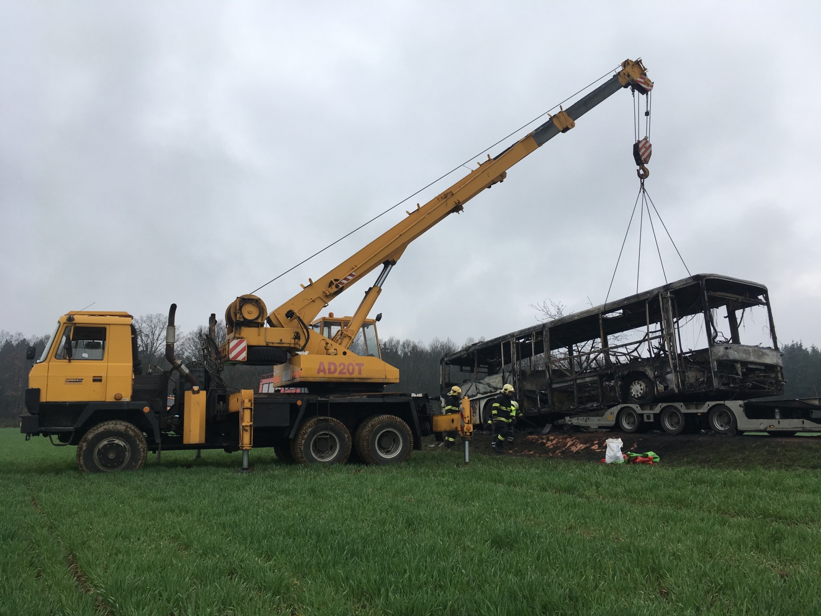 Časně ráno shořel u Tochovic na Příbramsku autobus