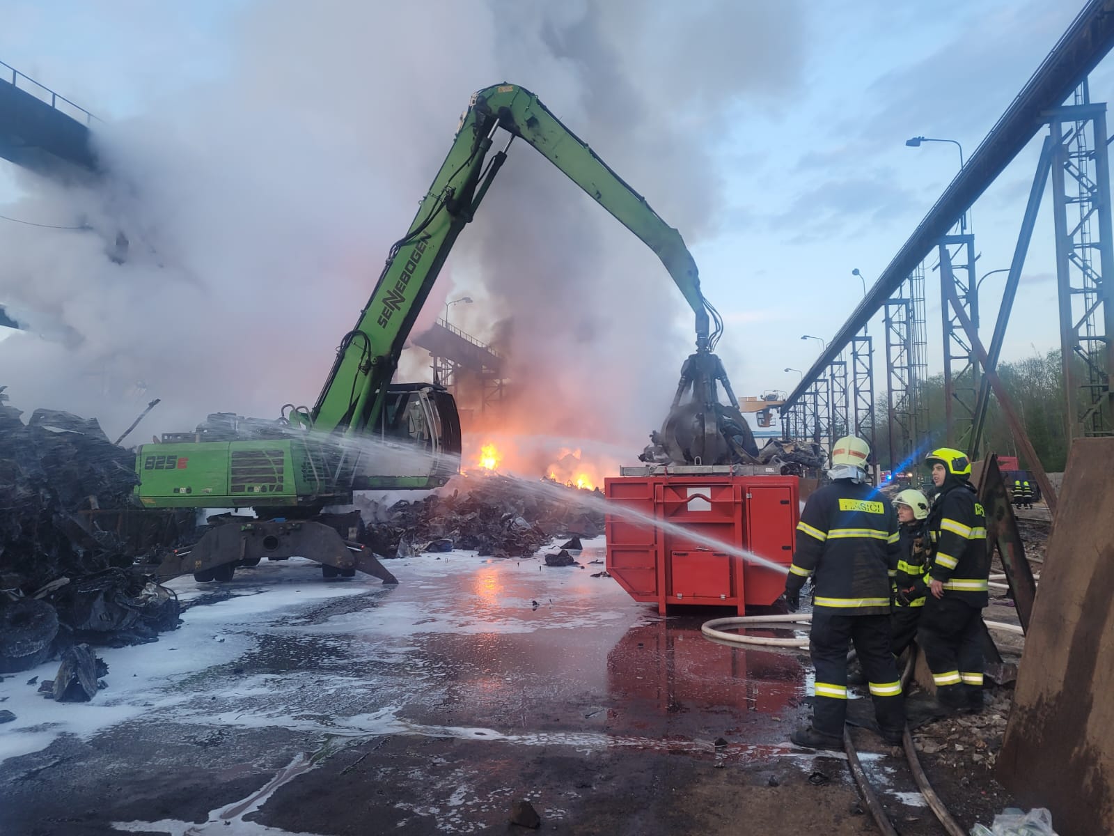 Kladenský kovošrot zasáhl obrovský požár, vyhlášen byl zvláštní stupeň poplachu - AKTUALIZACE (pátek 28. dubna 13.30 hodin)